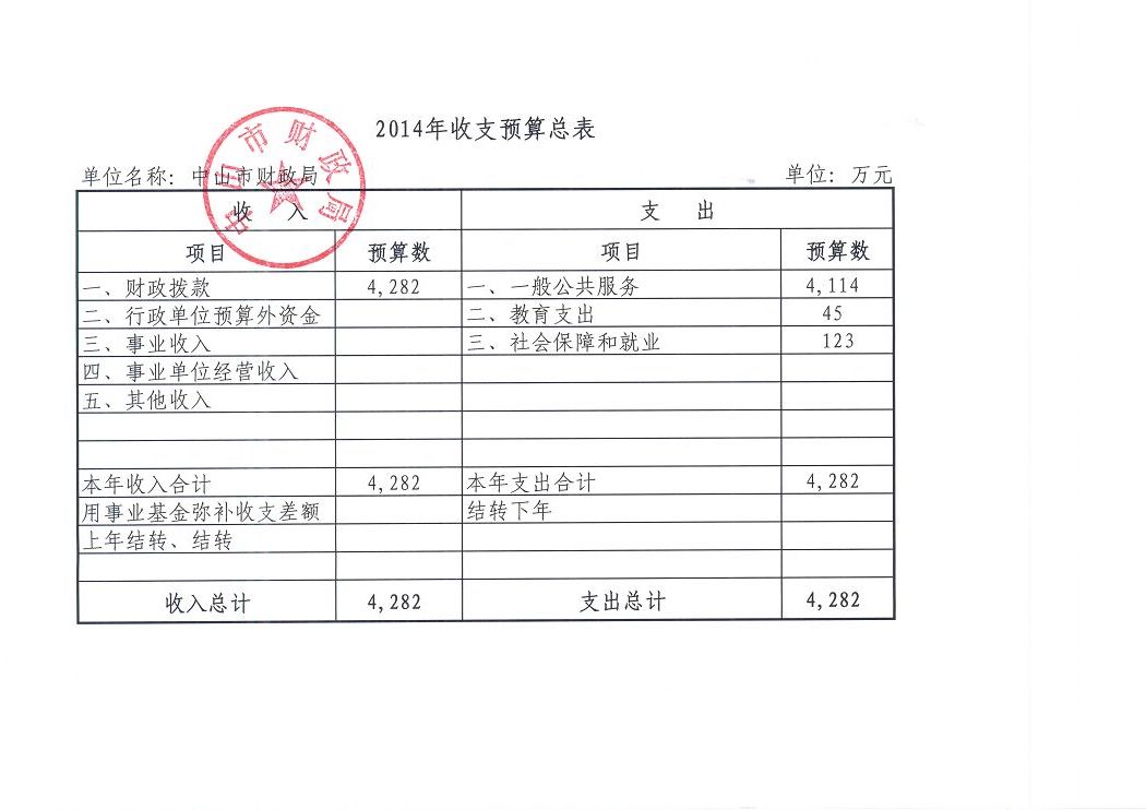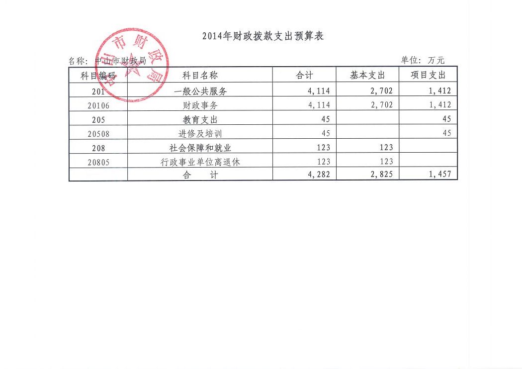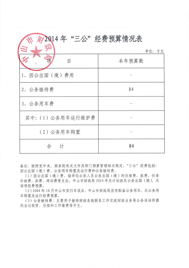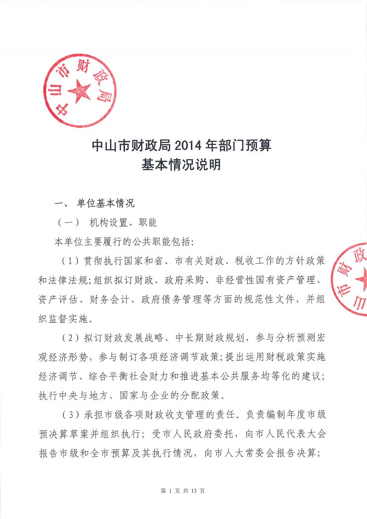 中山市财政局2014年部门预算基本情况说明