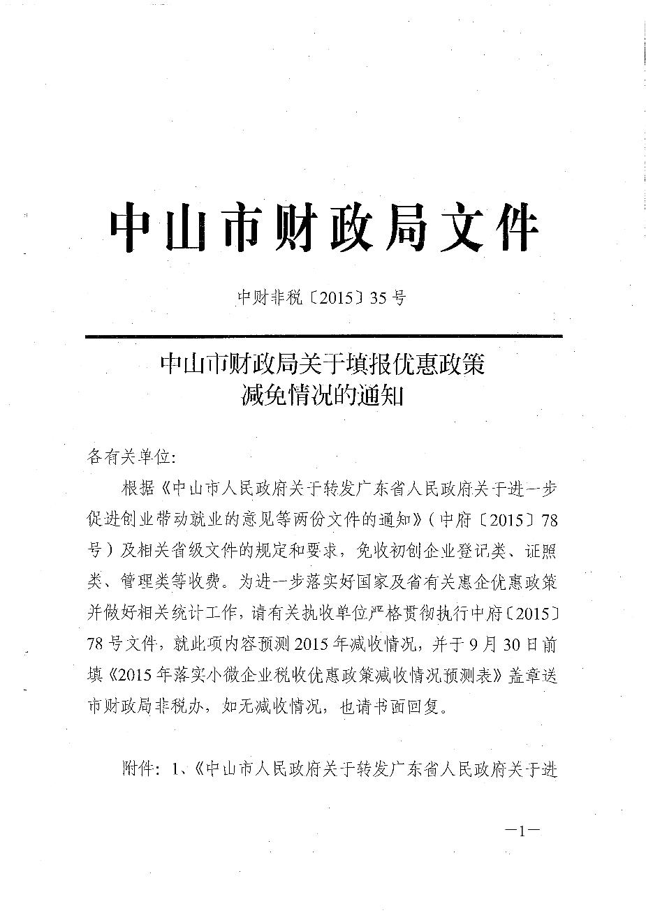 中山市财政局关于填报优惠政策减免情况的通知