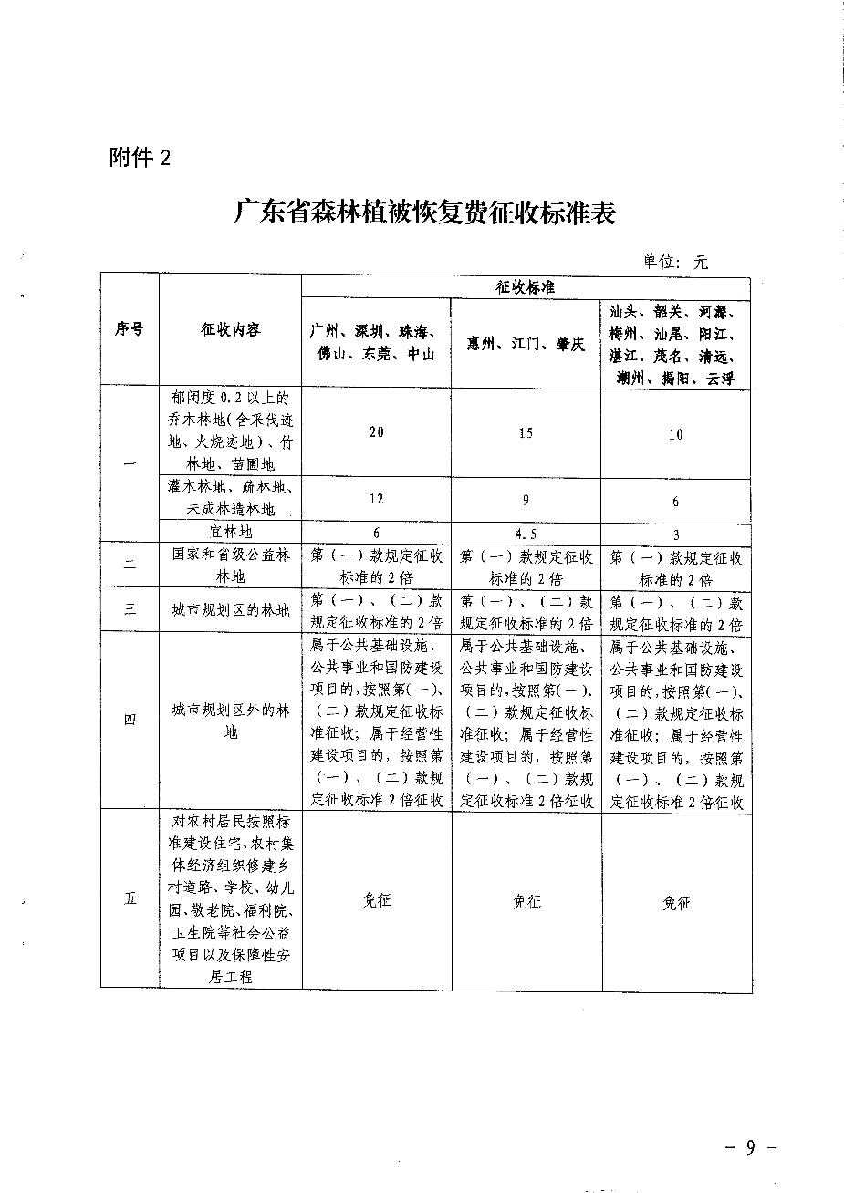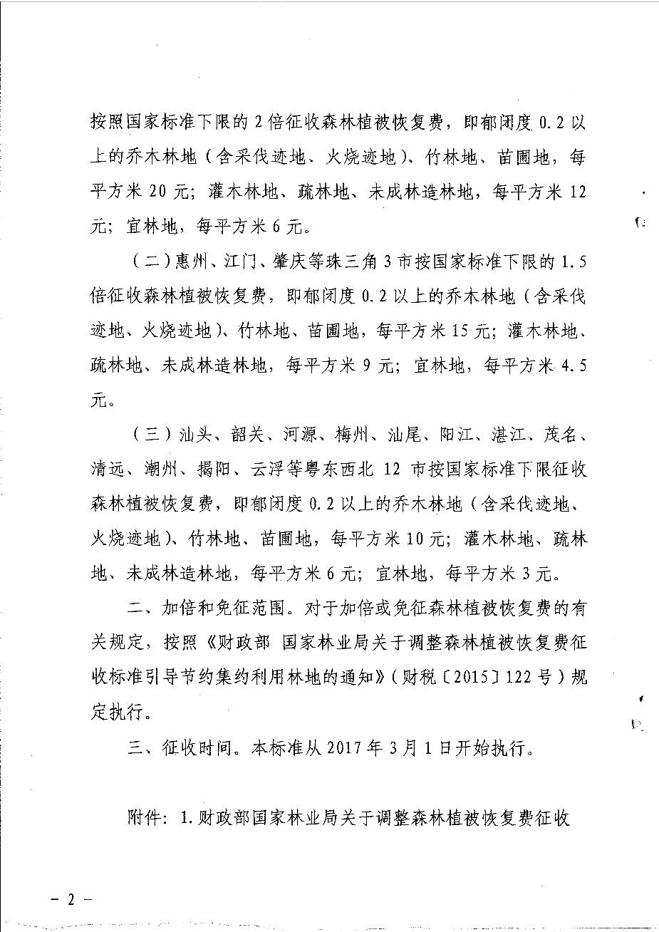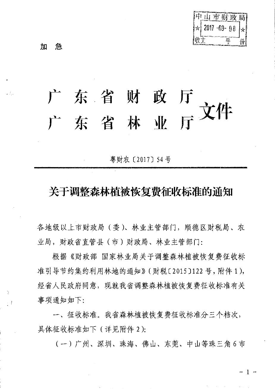 关于调整森林植被恢复费征收标准的通知(粤财农[2017]54号)