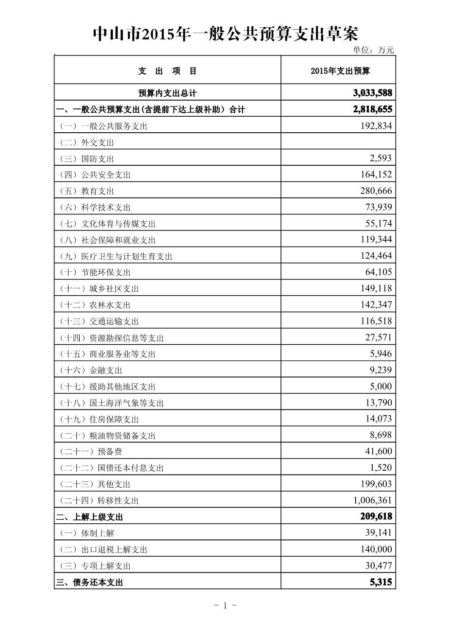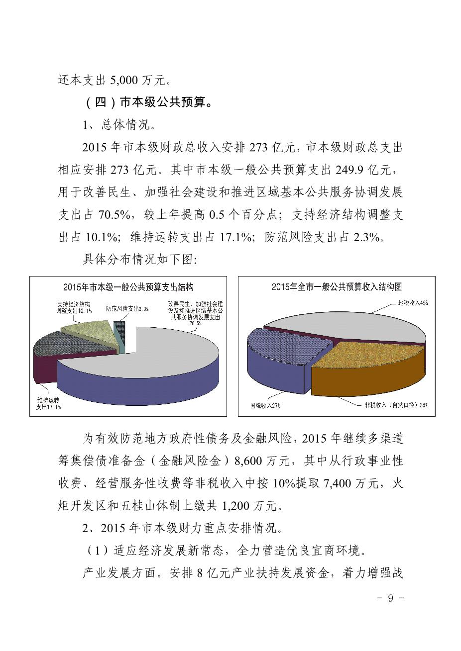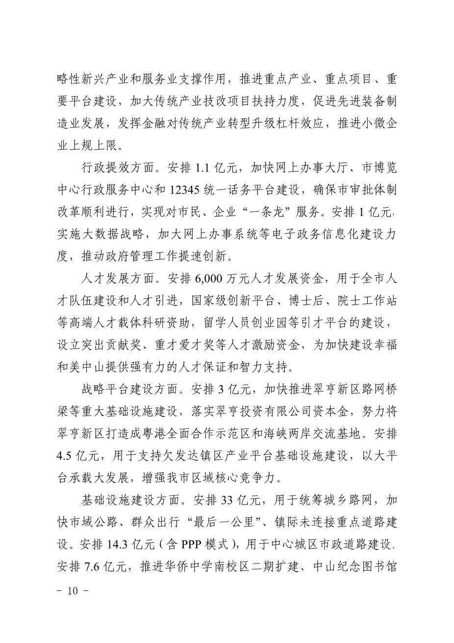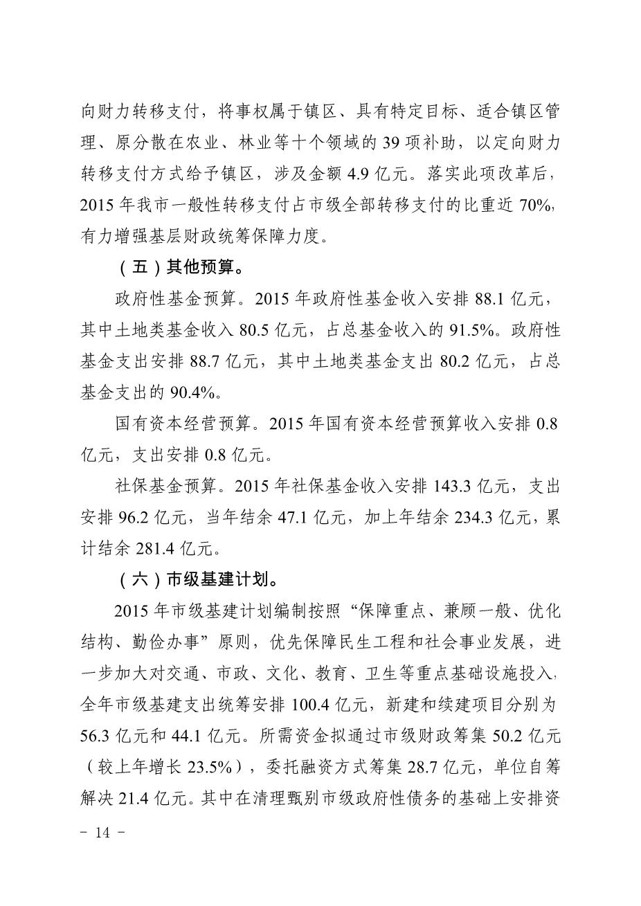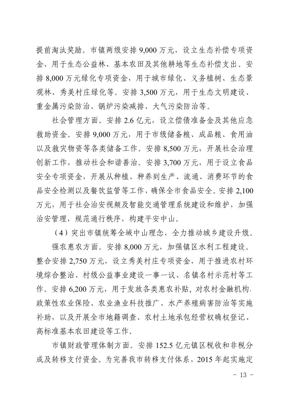 中山市2014年预算执行情况及2015年预算的报告